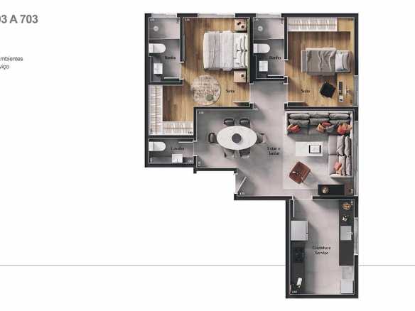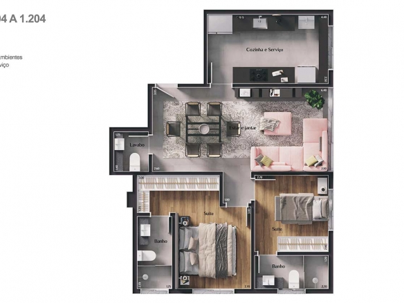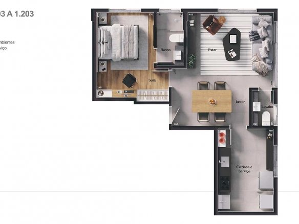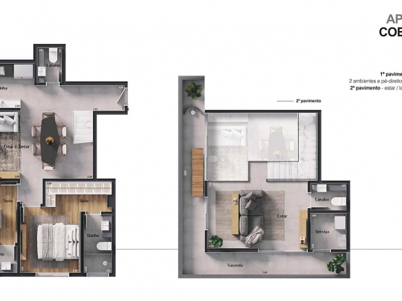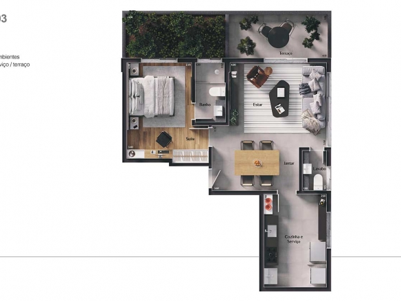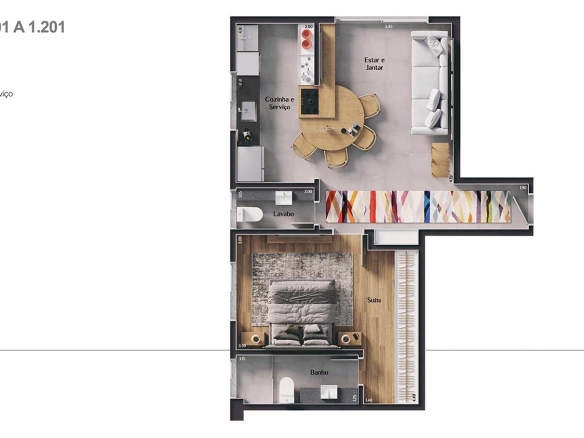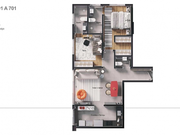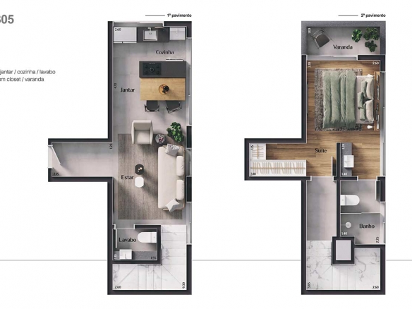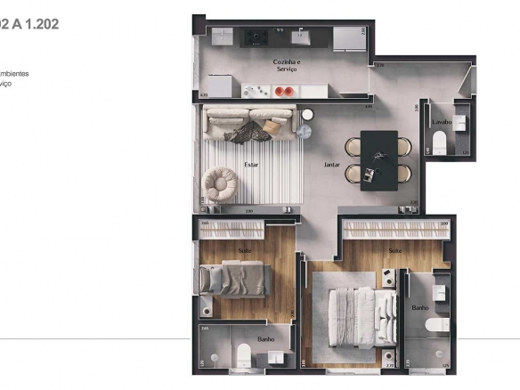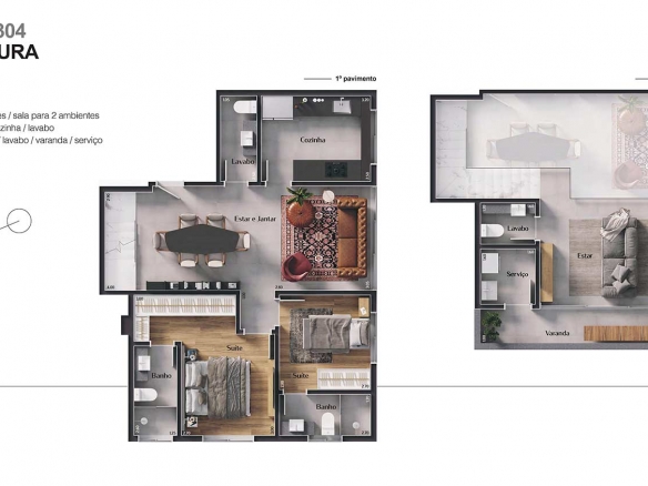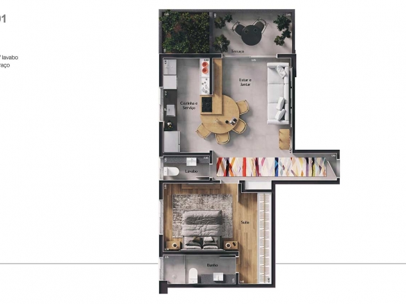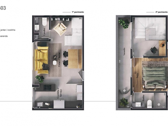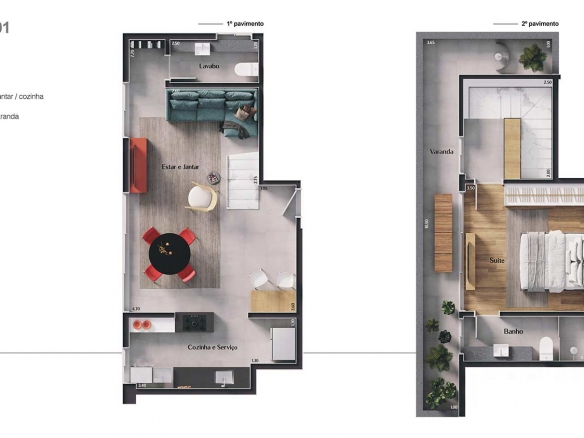 Projeto de decoração das perspectivas dos apartamentos por Tina Barbosa