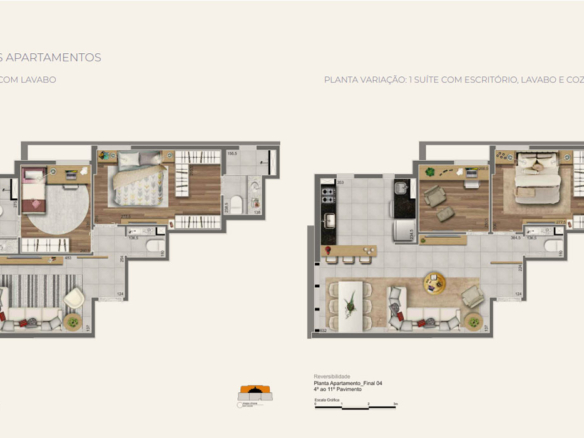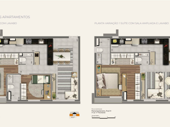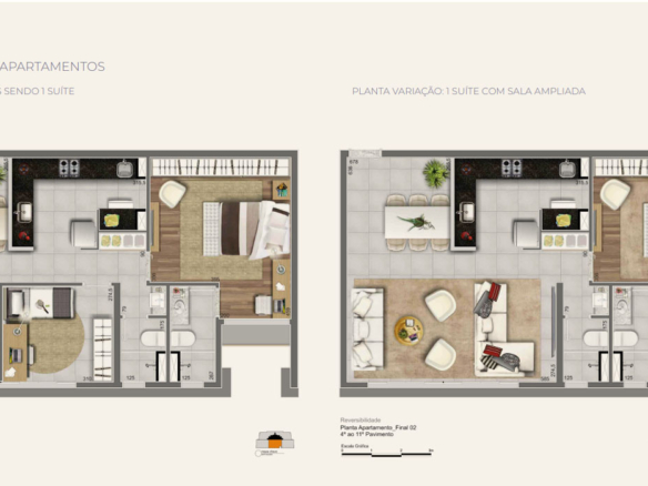 FLÚIDO: POSSIBILIDADE DE VARIAÇÃO: 1 SUÍTE COM SALA AMPLIADA E LAVABO