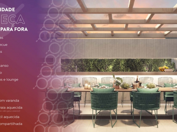 No Joy a alegria é palavra de ordem. Não apenas o conceito do empreendimento remete a essa emoção, mas toda a relação que será construída com o que está à nossa volta. É poder desfrutar de momentos ao máximo e viver a vida que acontece ao seu redor. Seja em momentos de autoconhecimento, relaxamento, compartilhamento ou confraternização. A emoção deverá se fazer presente em todas as circunstâncias. 66,79 a 169,90m²