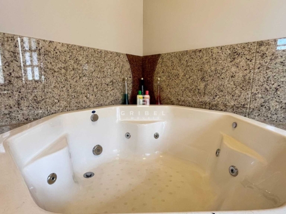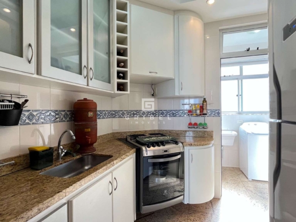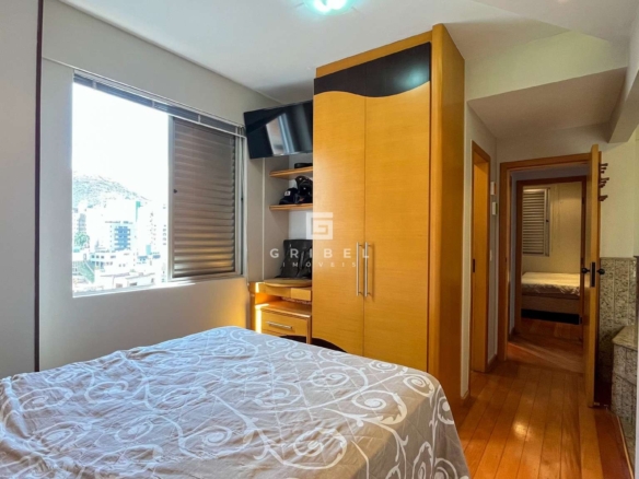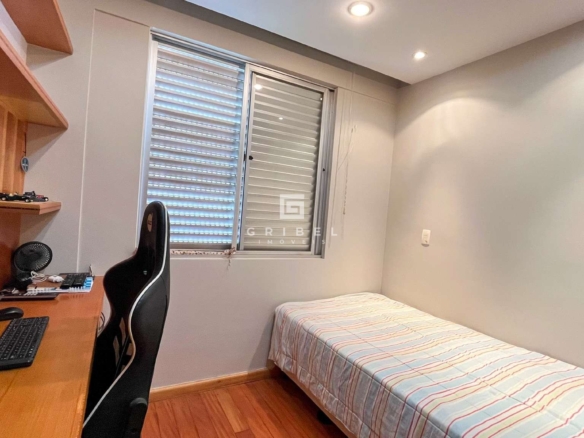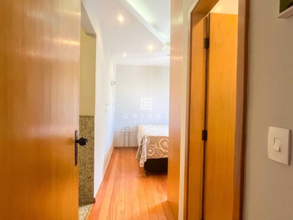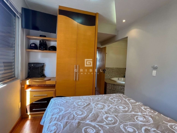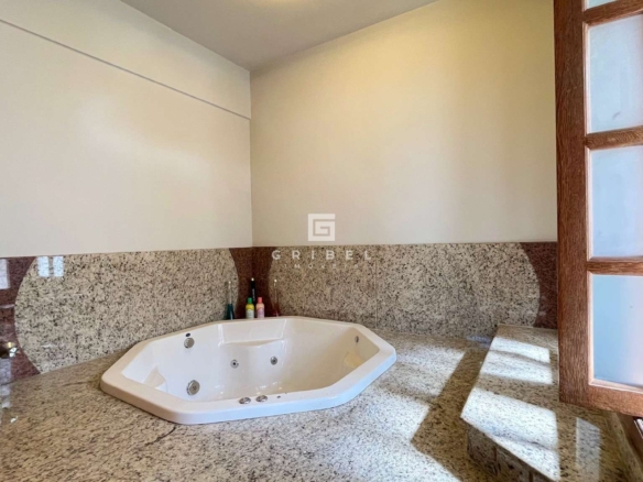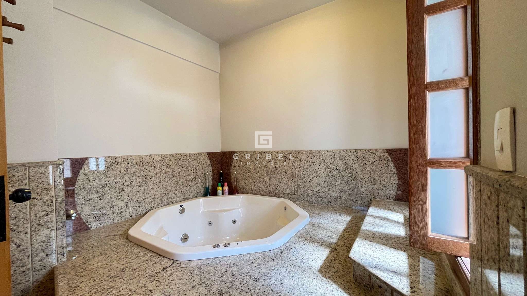 2 quartos amplos com piso em tábua corrida, teto rebaixado, iluminação planejada, sendo a suíte com hidromassagem, box em blindex, espelho, bancada em granito e armários