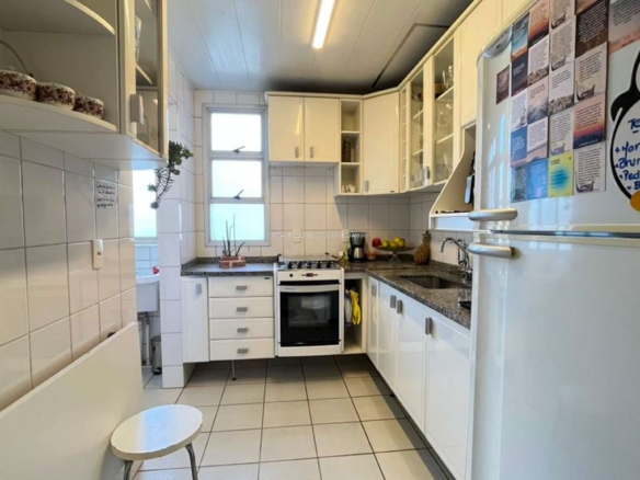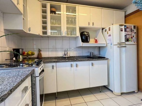 Cozinha funcional, equipada com armários planejados, bancadas em granito e piso em cerâmica.