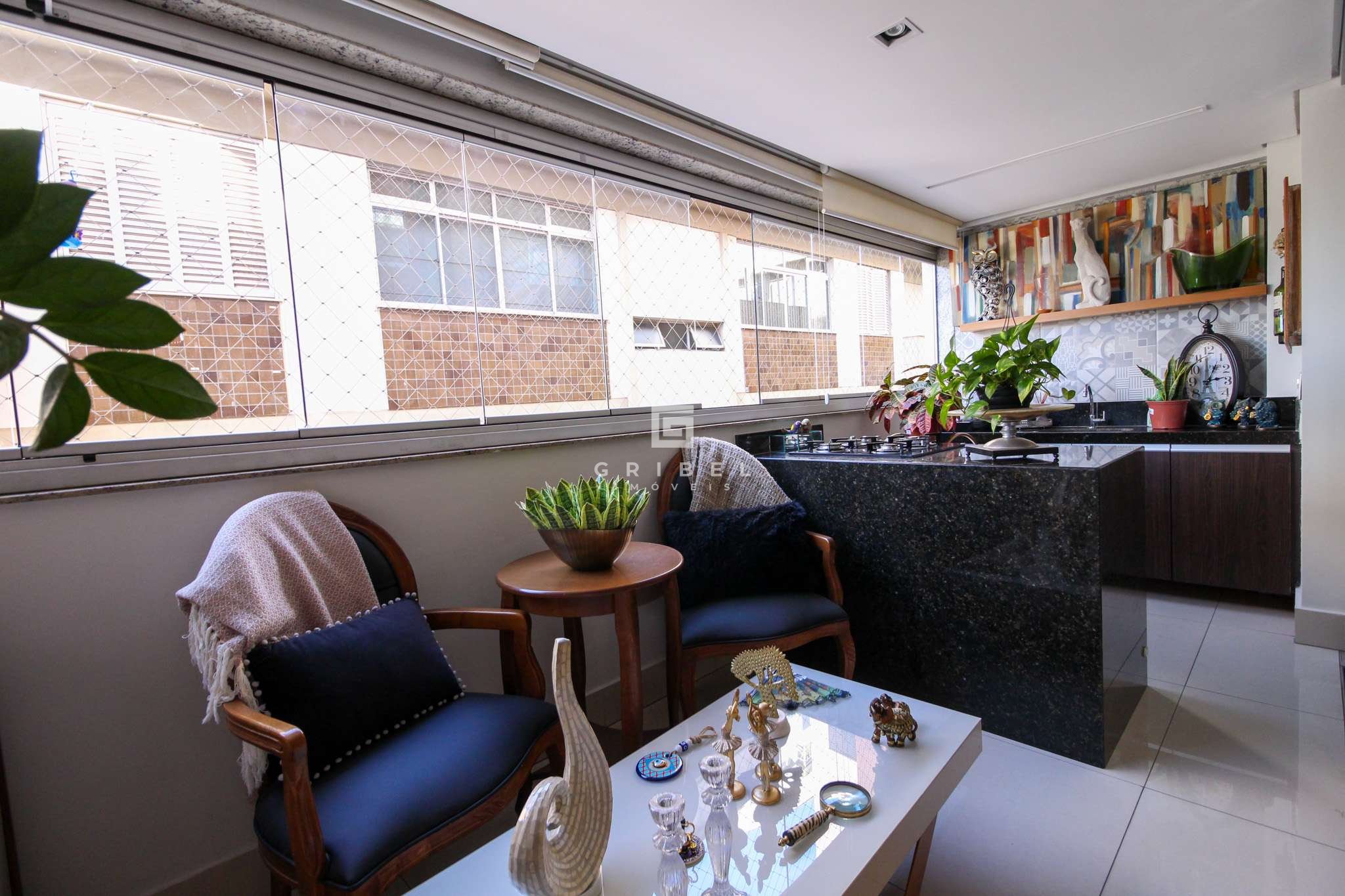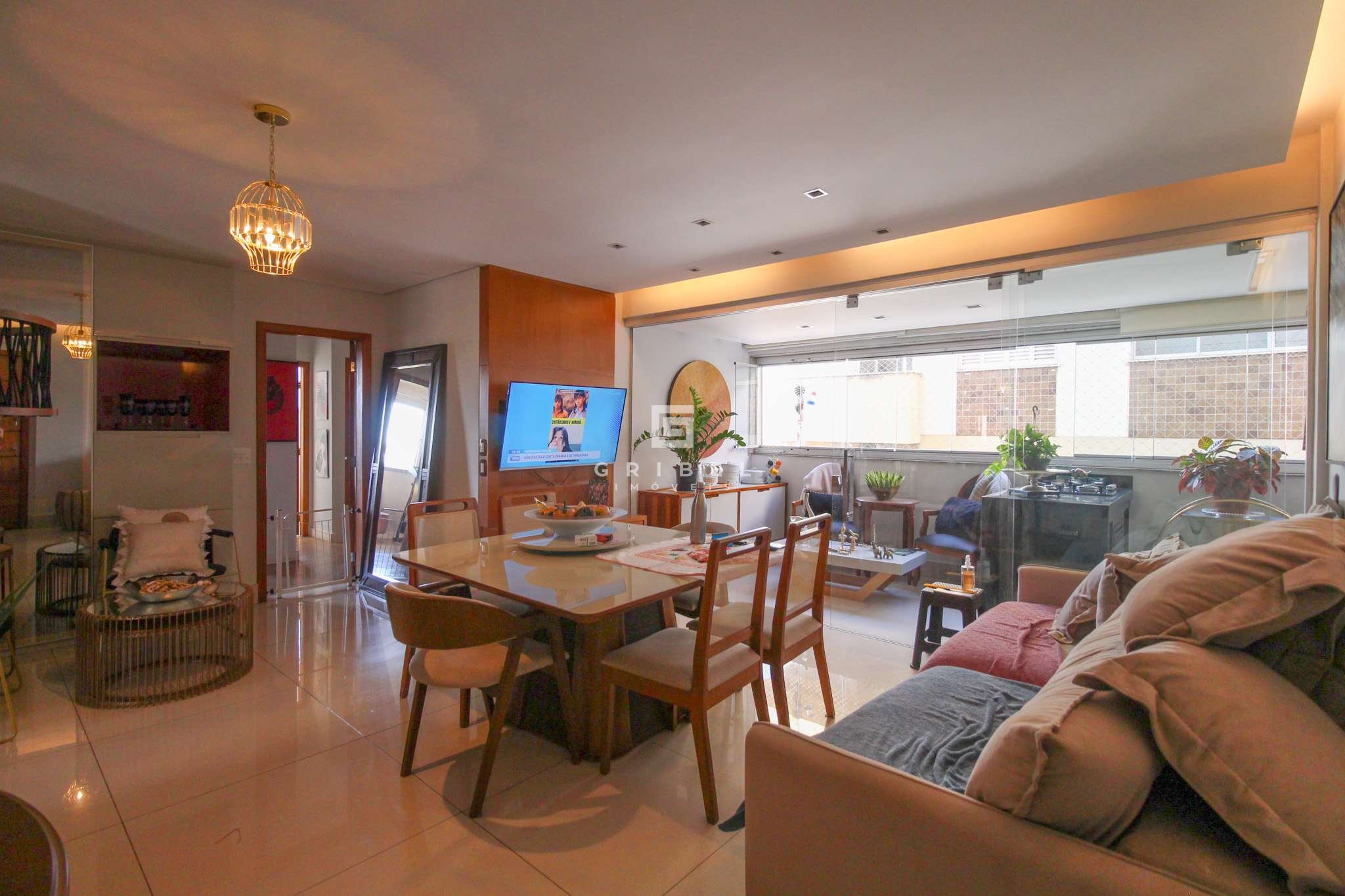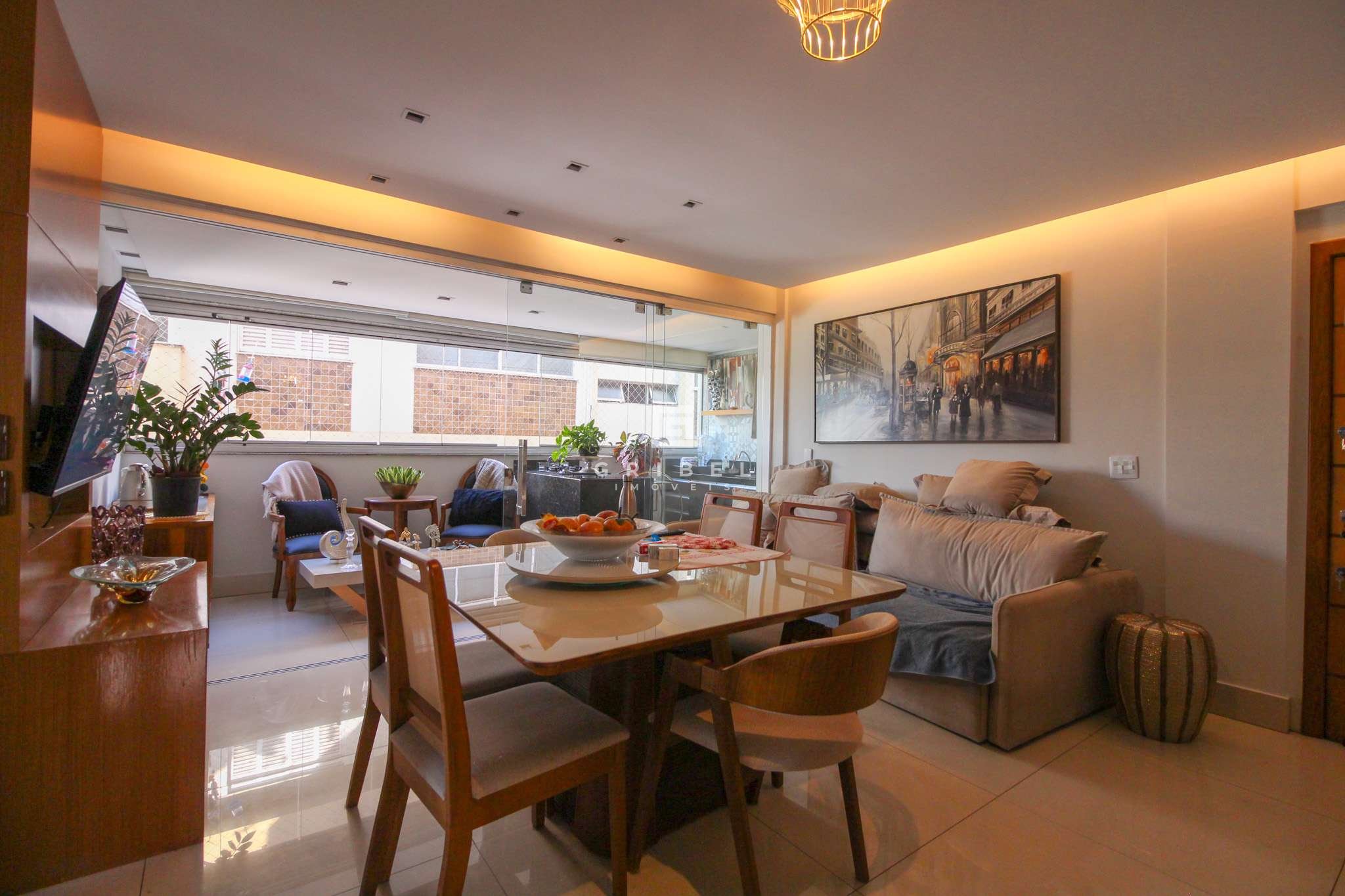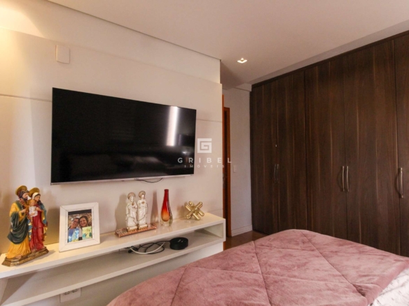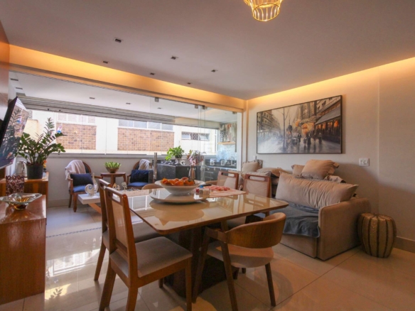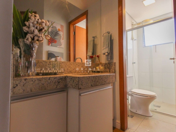 Acabamento: Porcelanato na sala, banheiros, área de serviço, aréa privativa gourmet e dispensa. Quartos em vinilico de madeira e cozinha em granito.