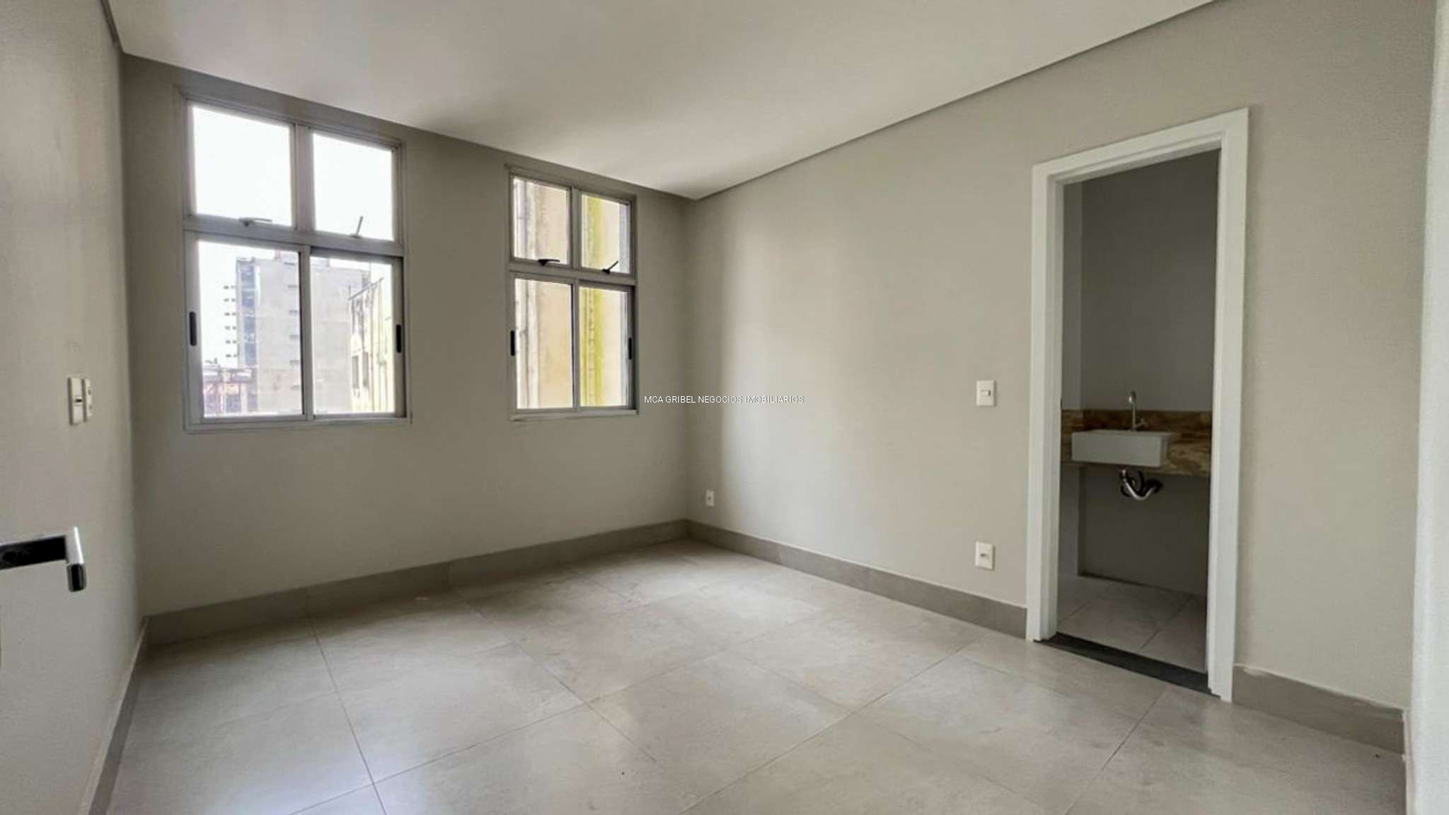 2 quartos com piso em porcelanato, sendo 1 suíte.