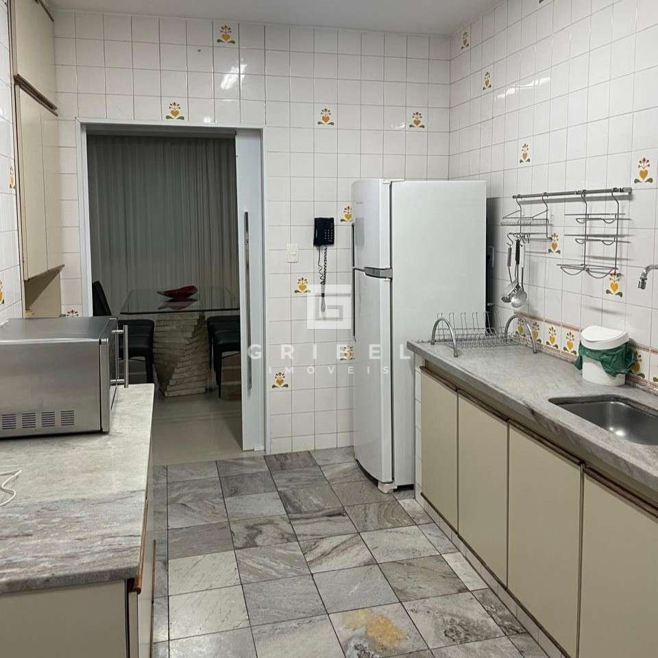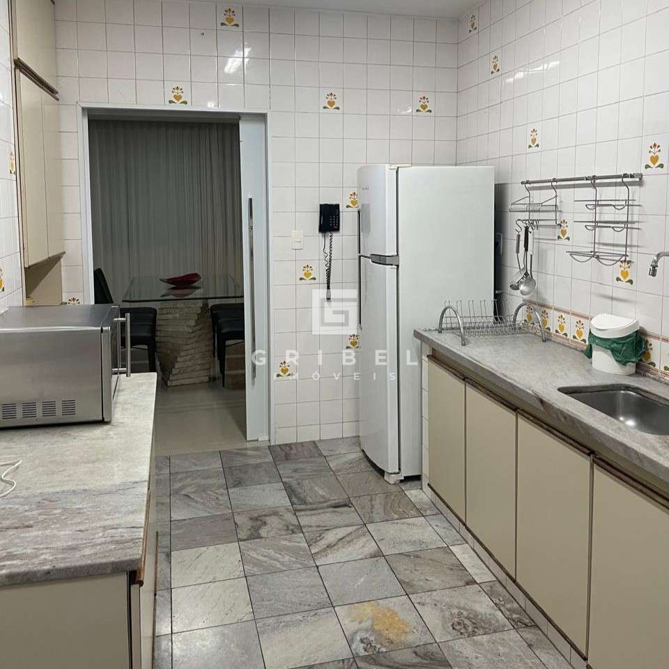 * Cozinha funcional, equipada com armários modulados, bancada em granito e piso em cerâmica.