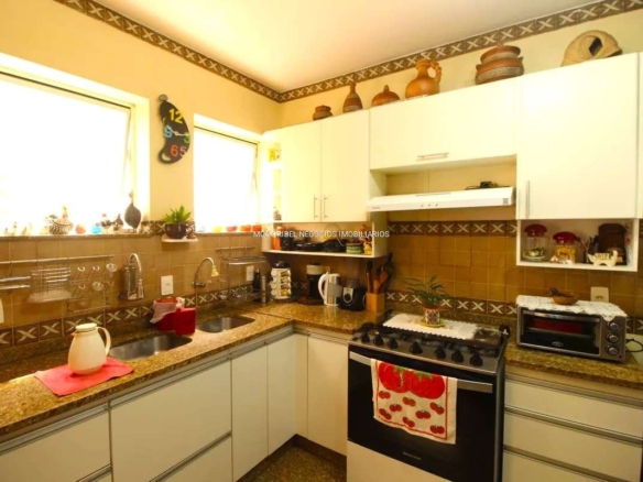 Cozinha espaçosa com piso/bancada em granito e armários planejados