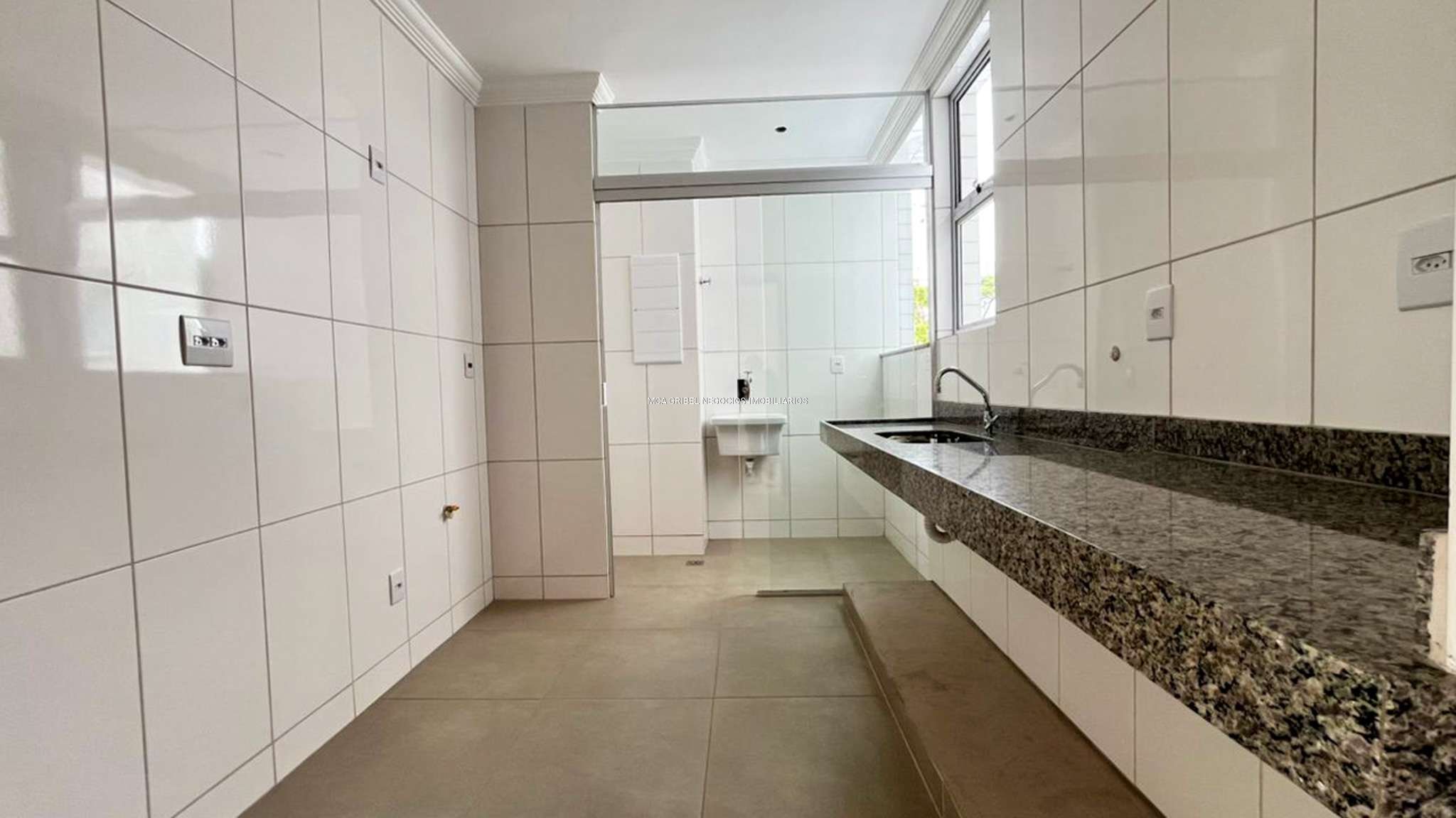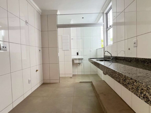 Cozinha espaçosa com bancada em granito e piso em porcelanato