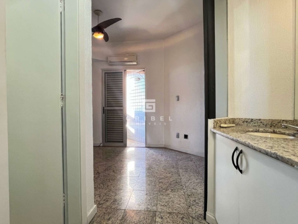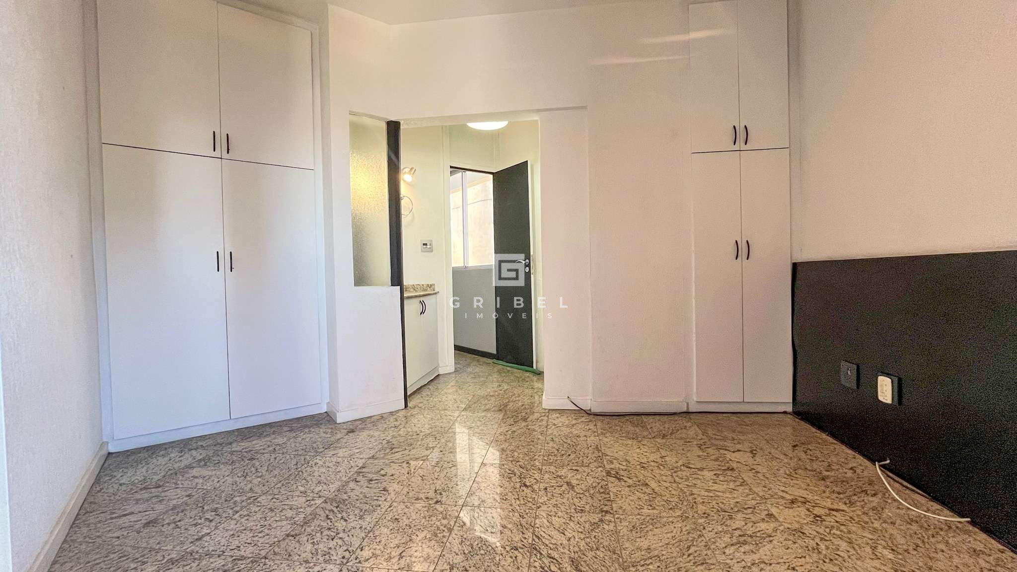 1 quarto espaçoso com armários planejados, piso em granito e varanda