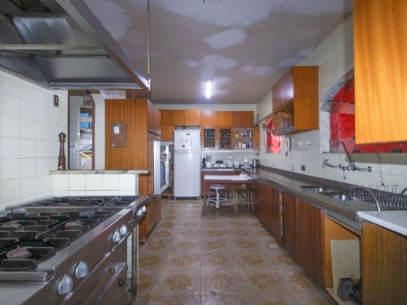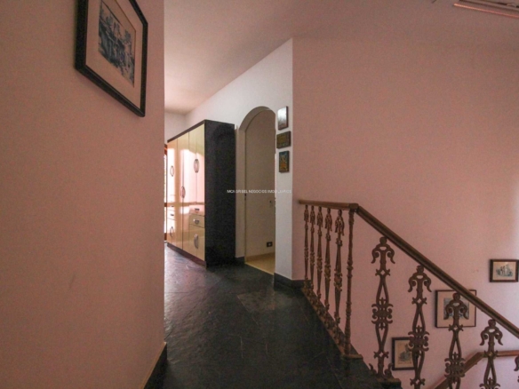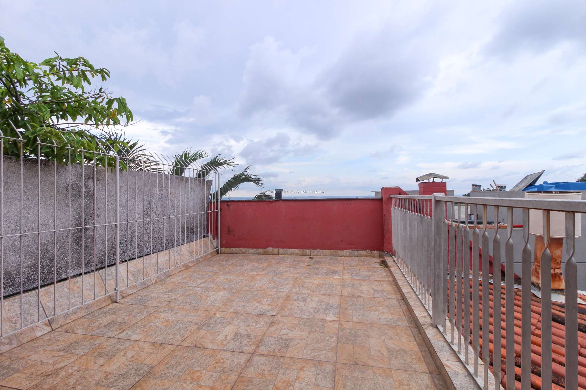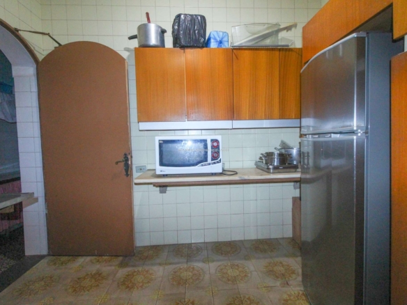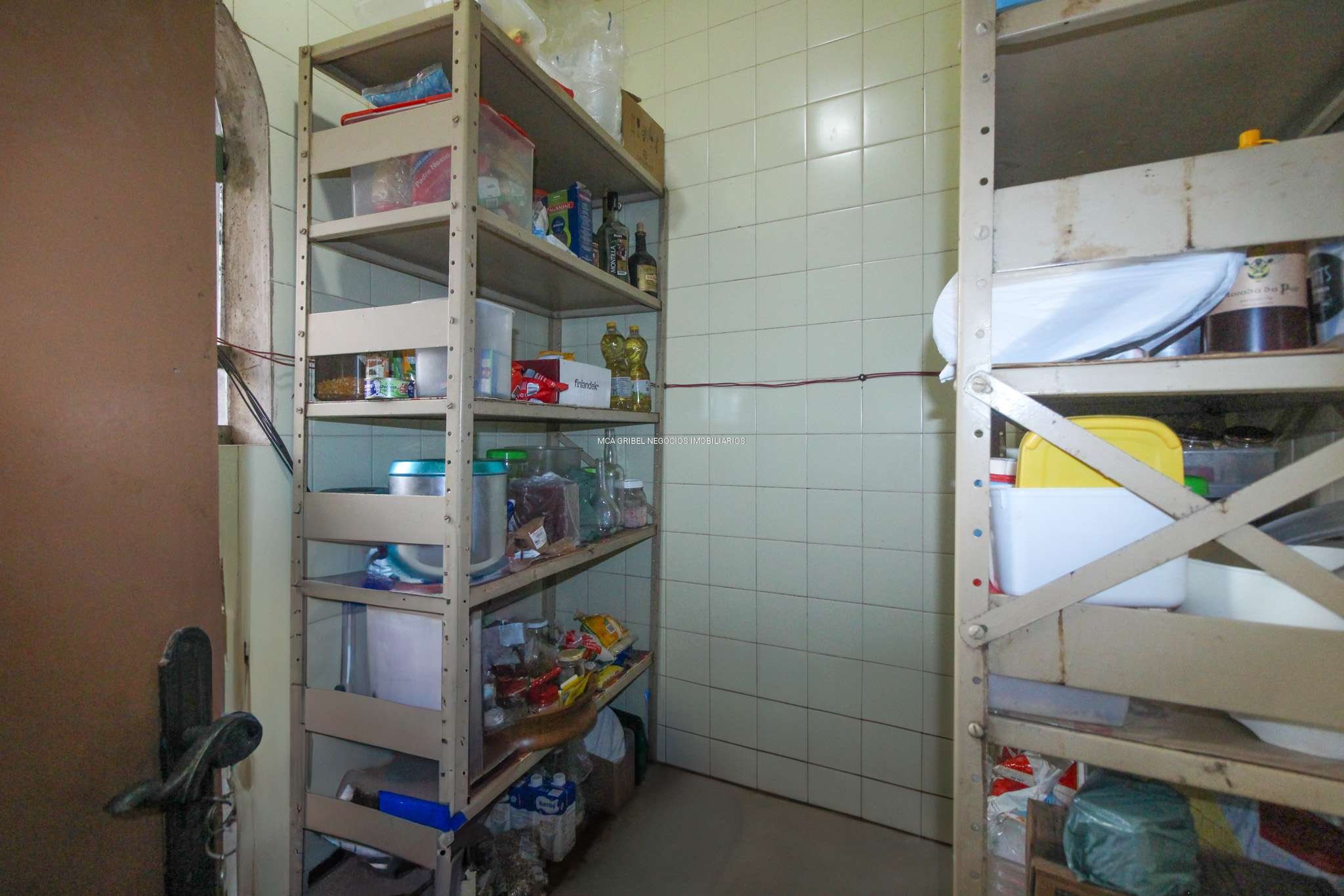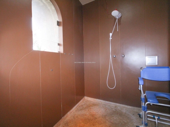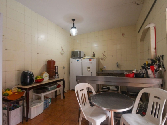 ? O imóvel possui um elevador que conecta o térreo à varanda do segundo andar, com paradas também no primeiro piso próximo à sala de jantar. Atualmente, o elevador está inoperante.