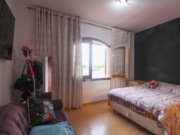 ? Uma terceira suíte está localizada acima da área gourmet, com acesso por uma escada em caracol ou pela varanda da suíte principal.