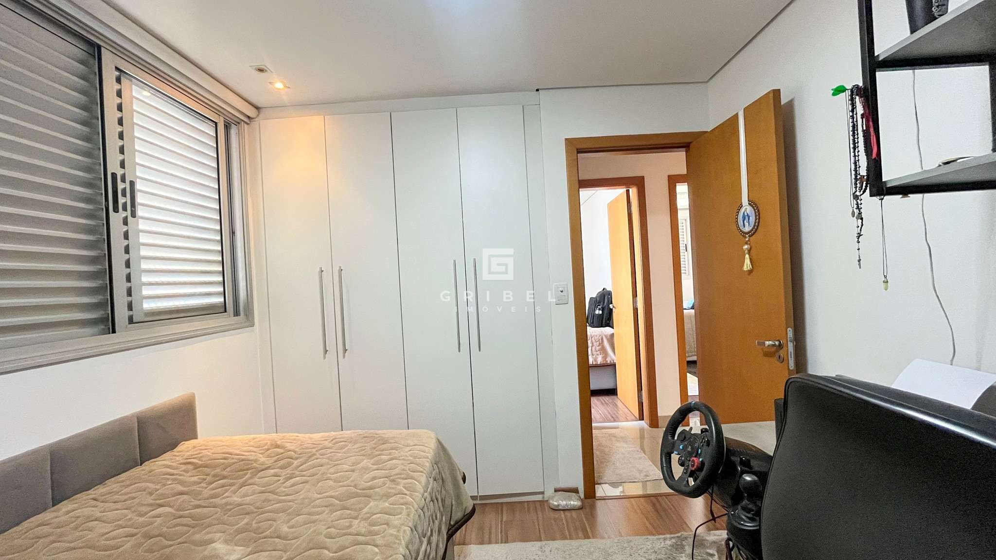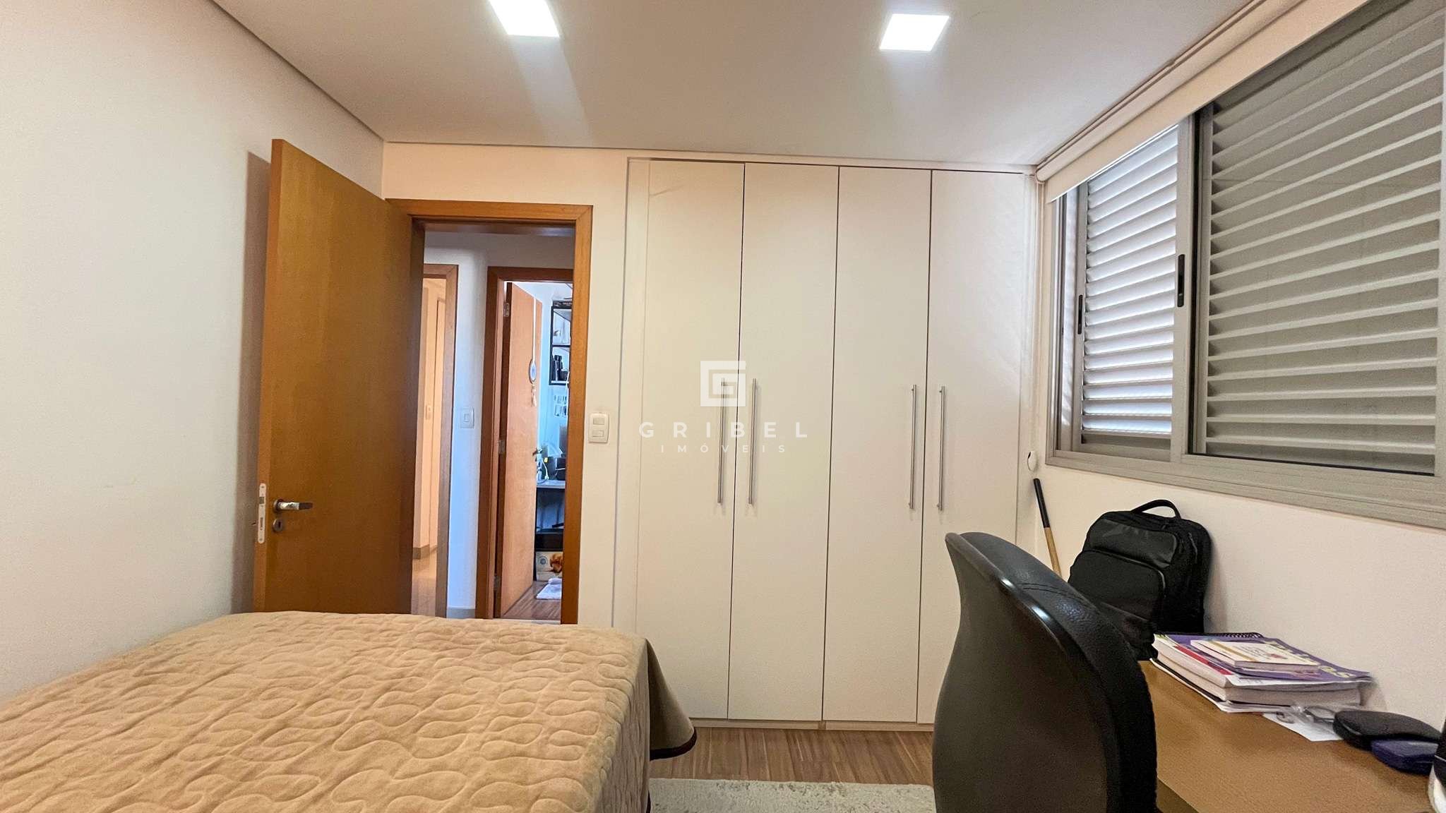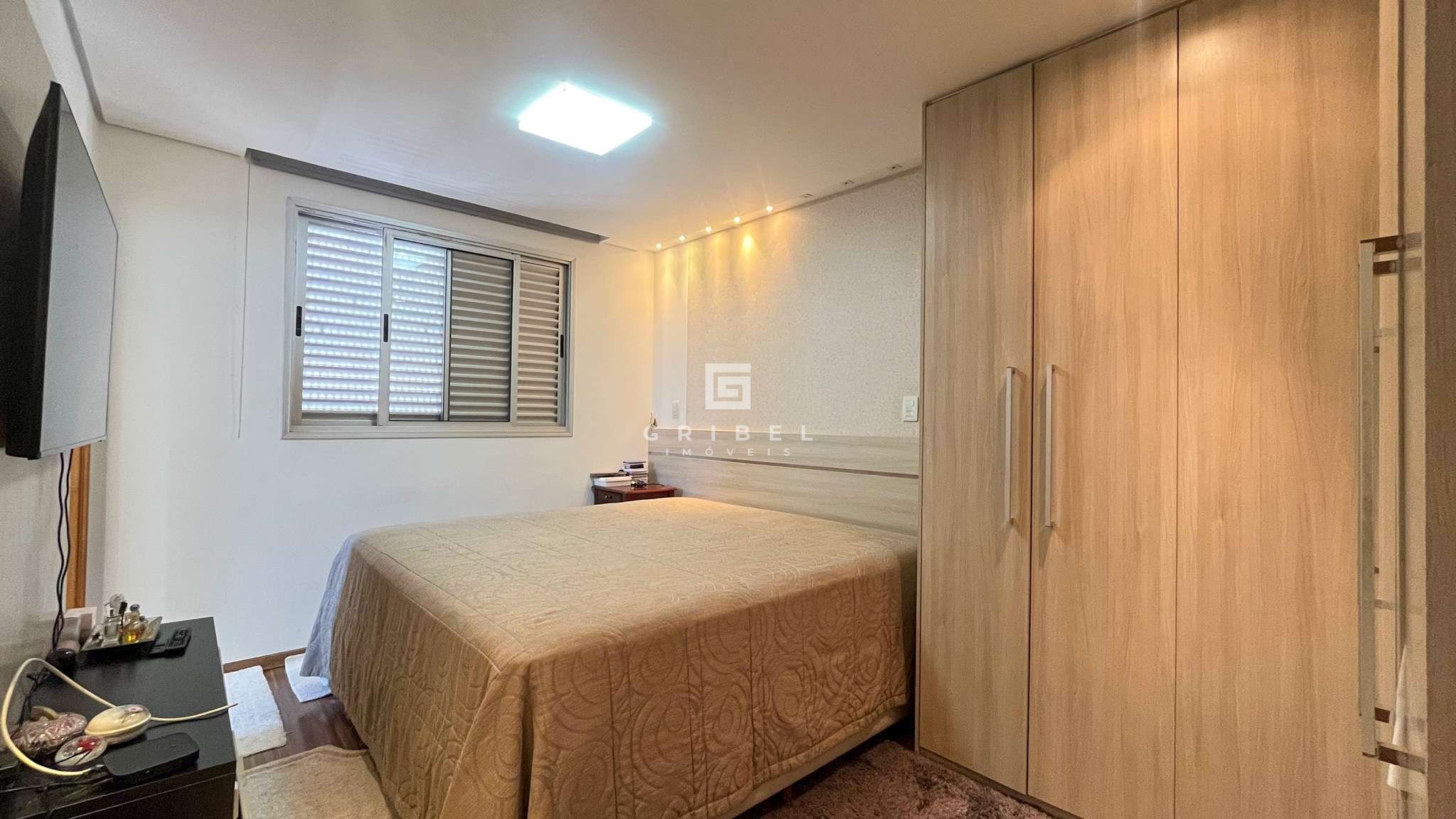 3 Quartos, sendo um deles suíte com box em blindex, armários e espelho