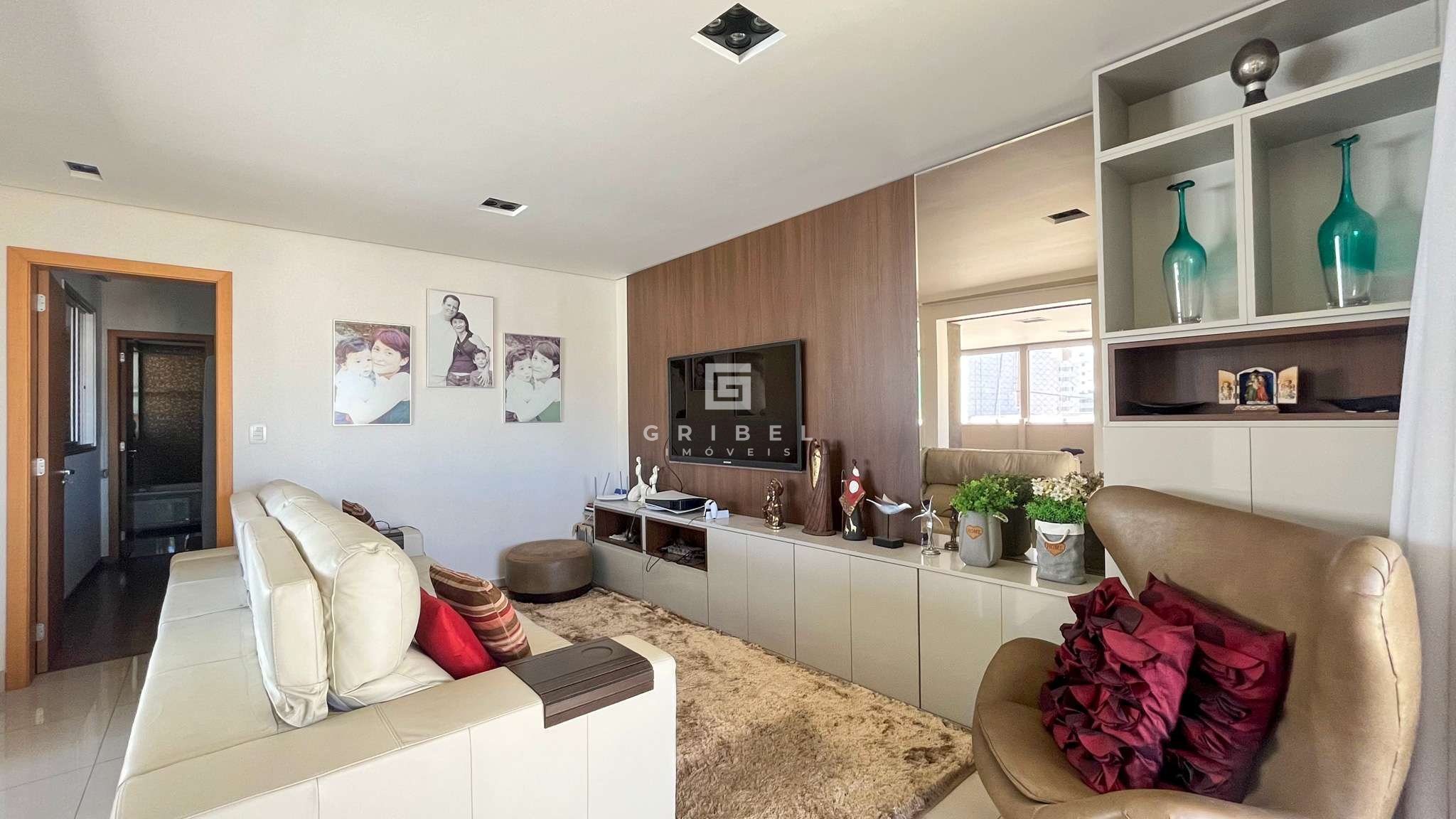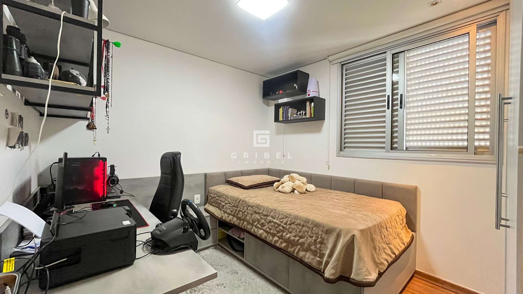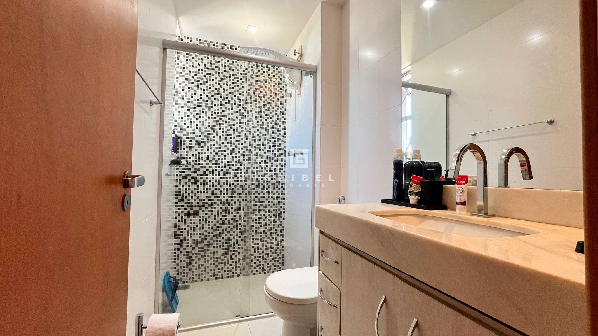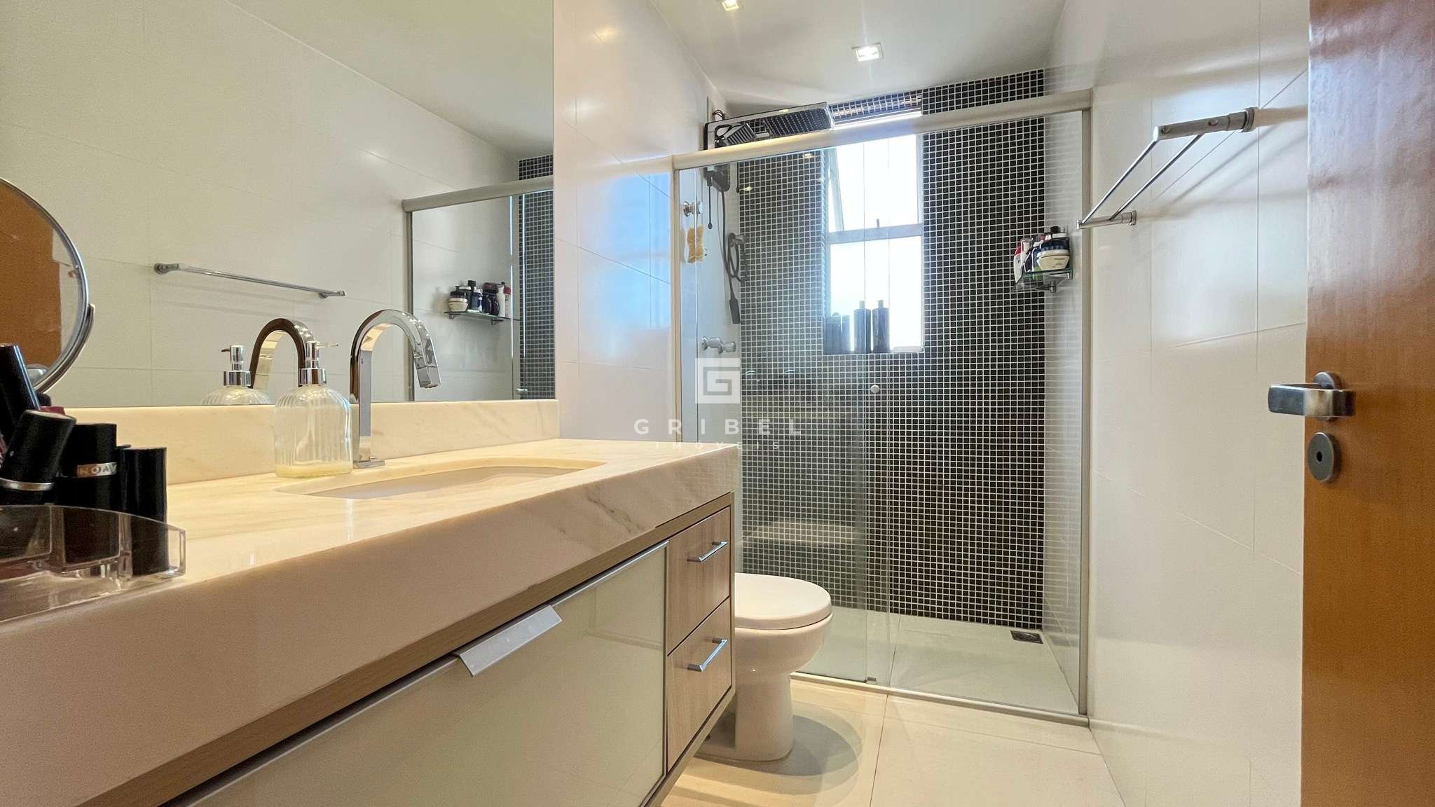 3 Quartos, sendo um deles suíte com box em blindex, armários e espelho