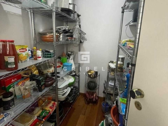 – Cozinha com piso em granito, armários planejados, bancada americana e pia em granito.