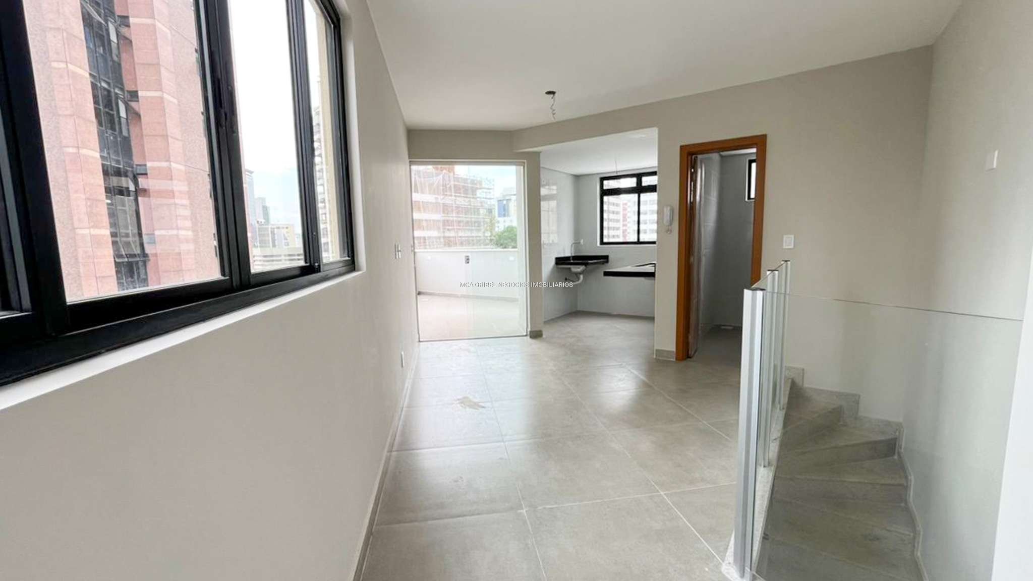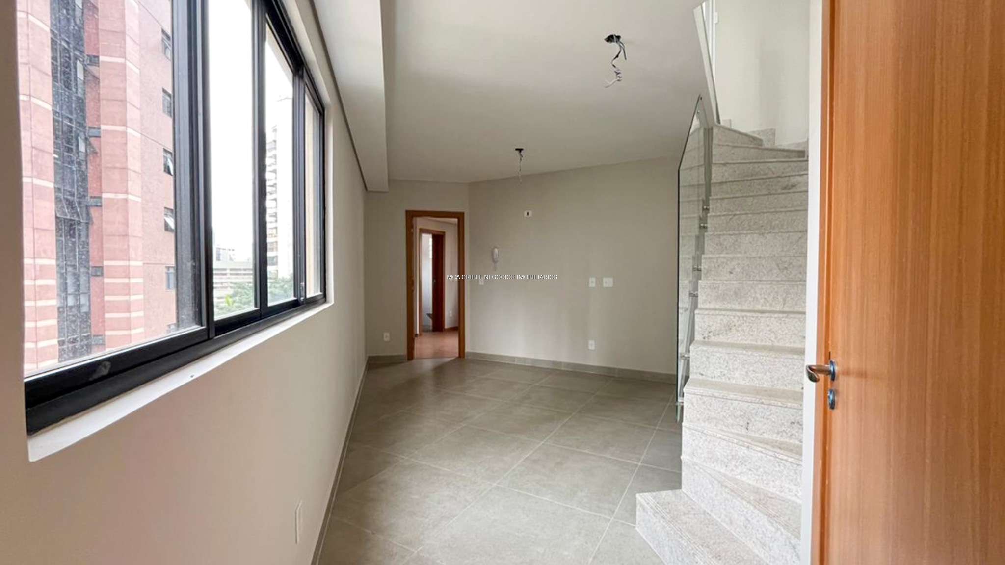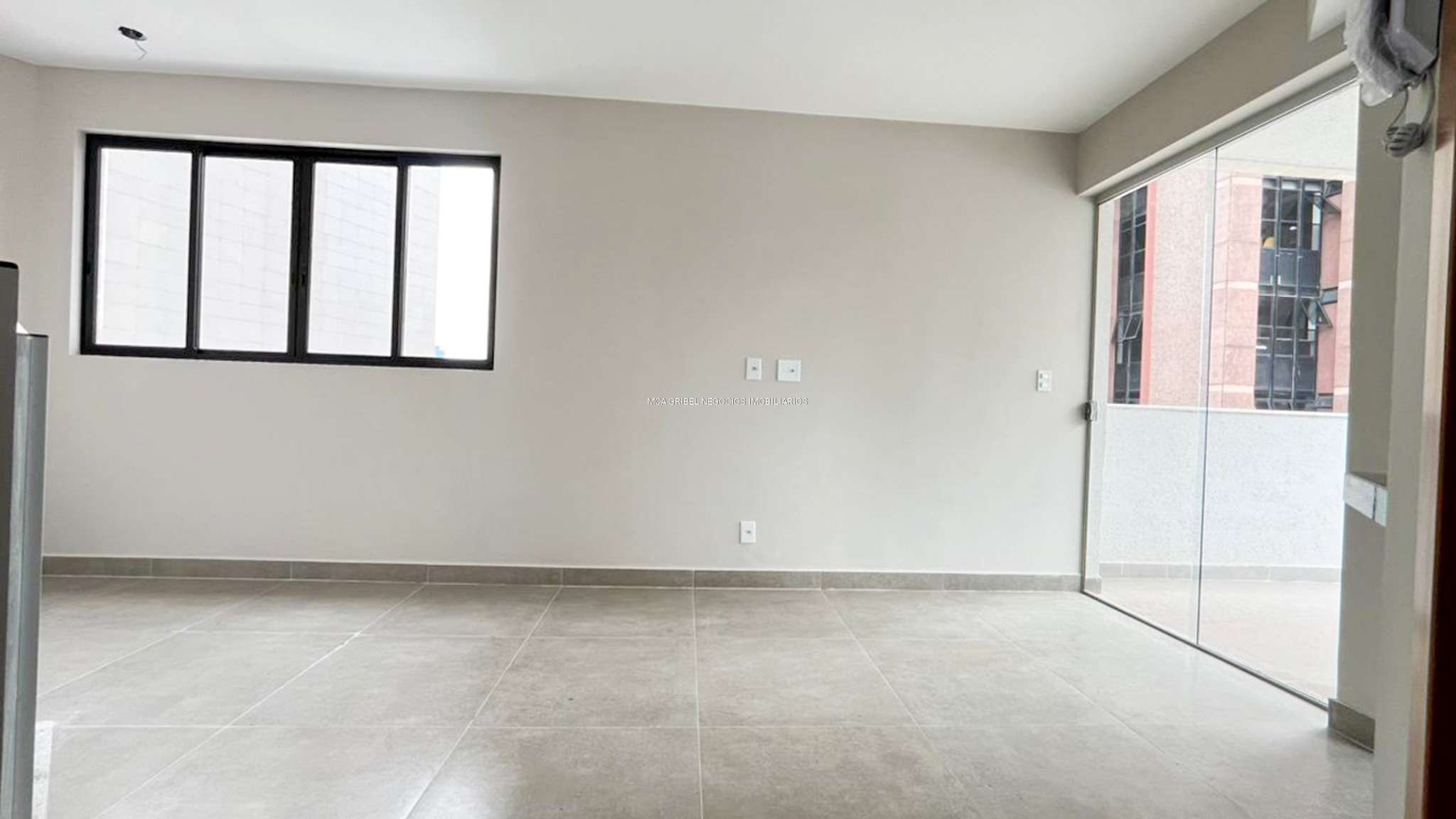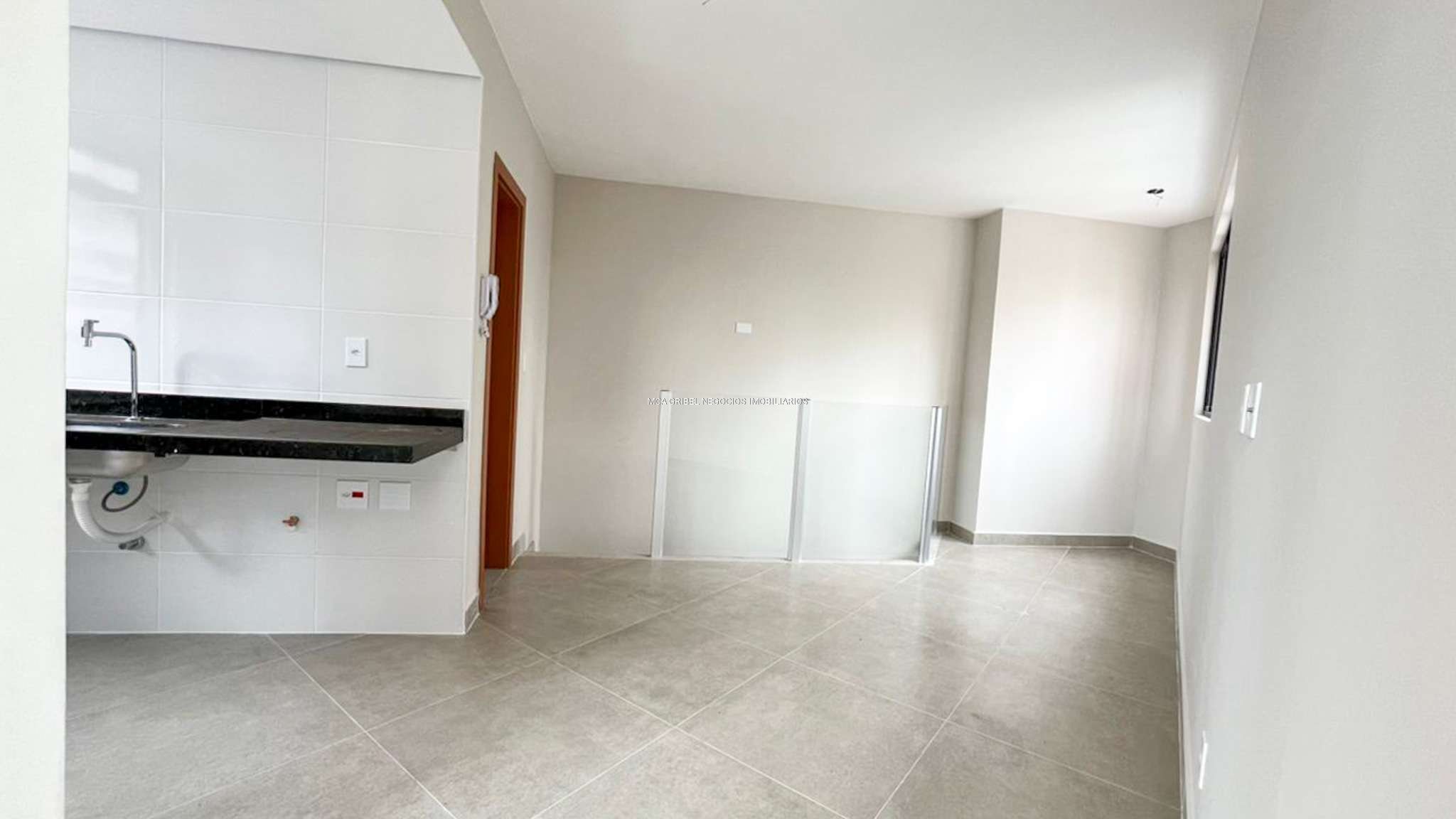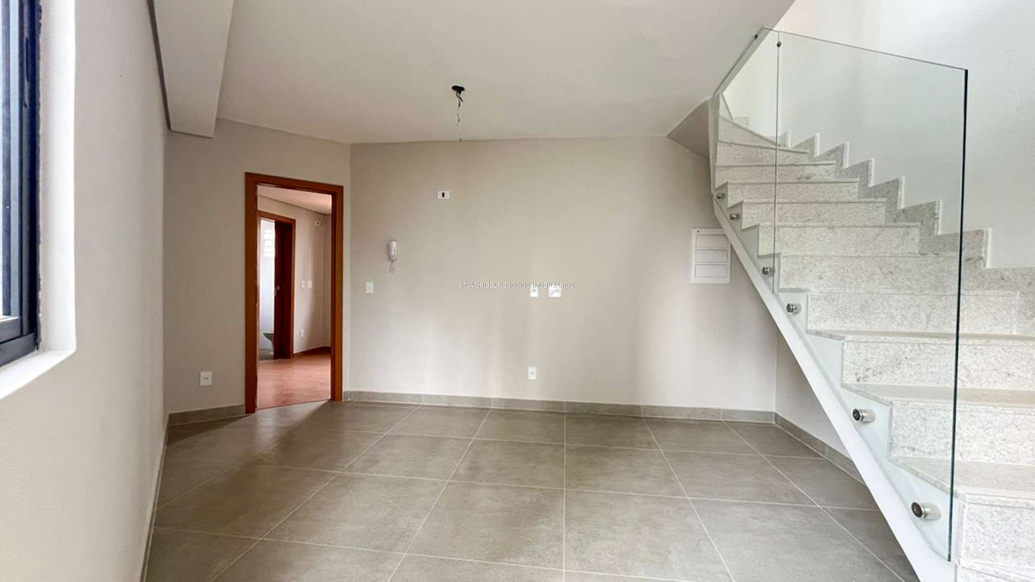 Sala com piso em porcelanato, perfeita para momentos de convivência.