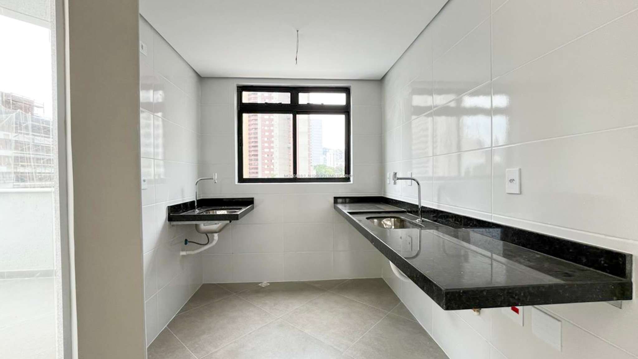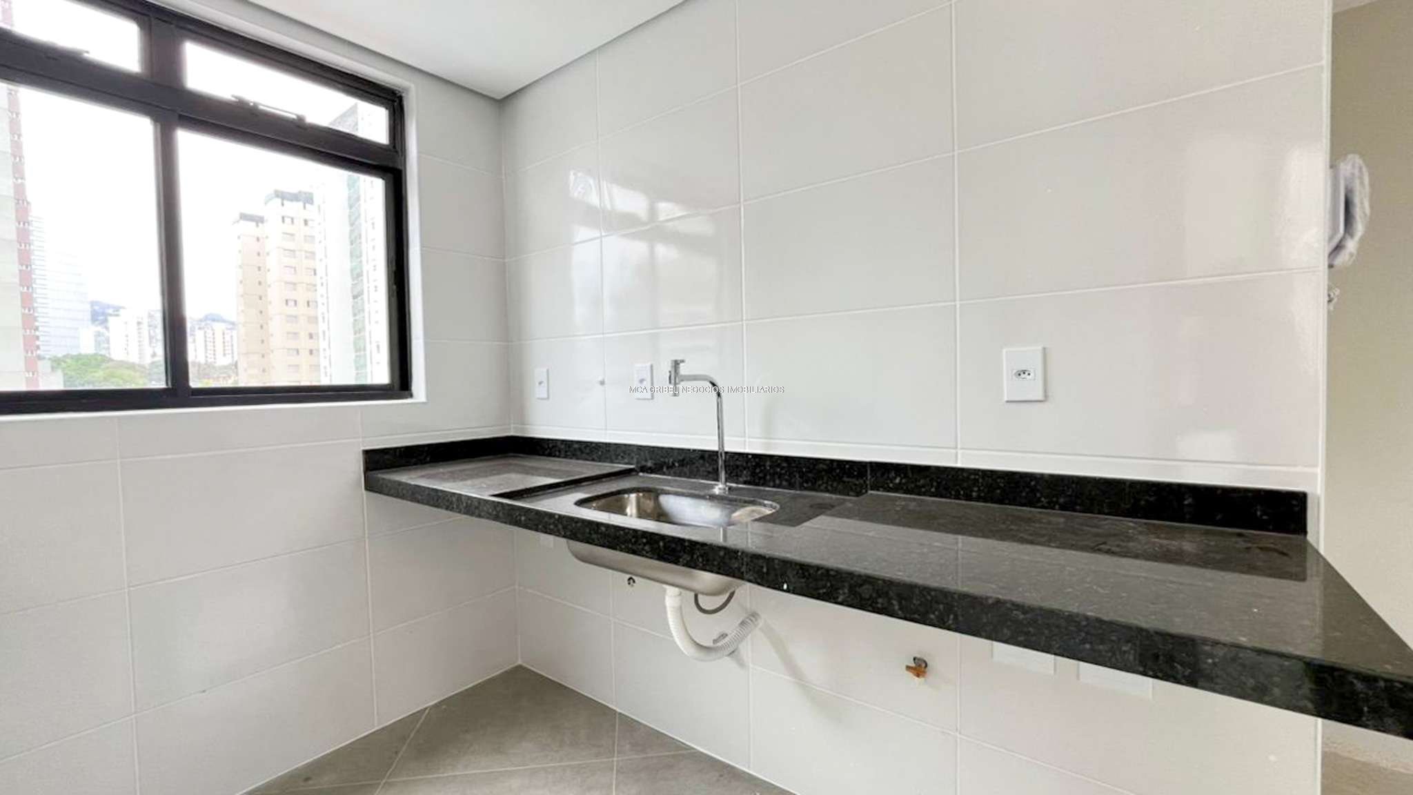 Cozinha com bancada em granito, funcional e moderna.