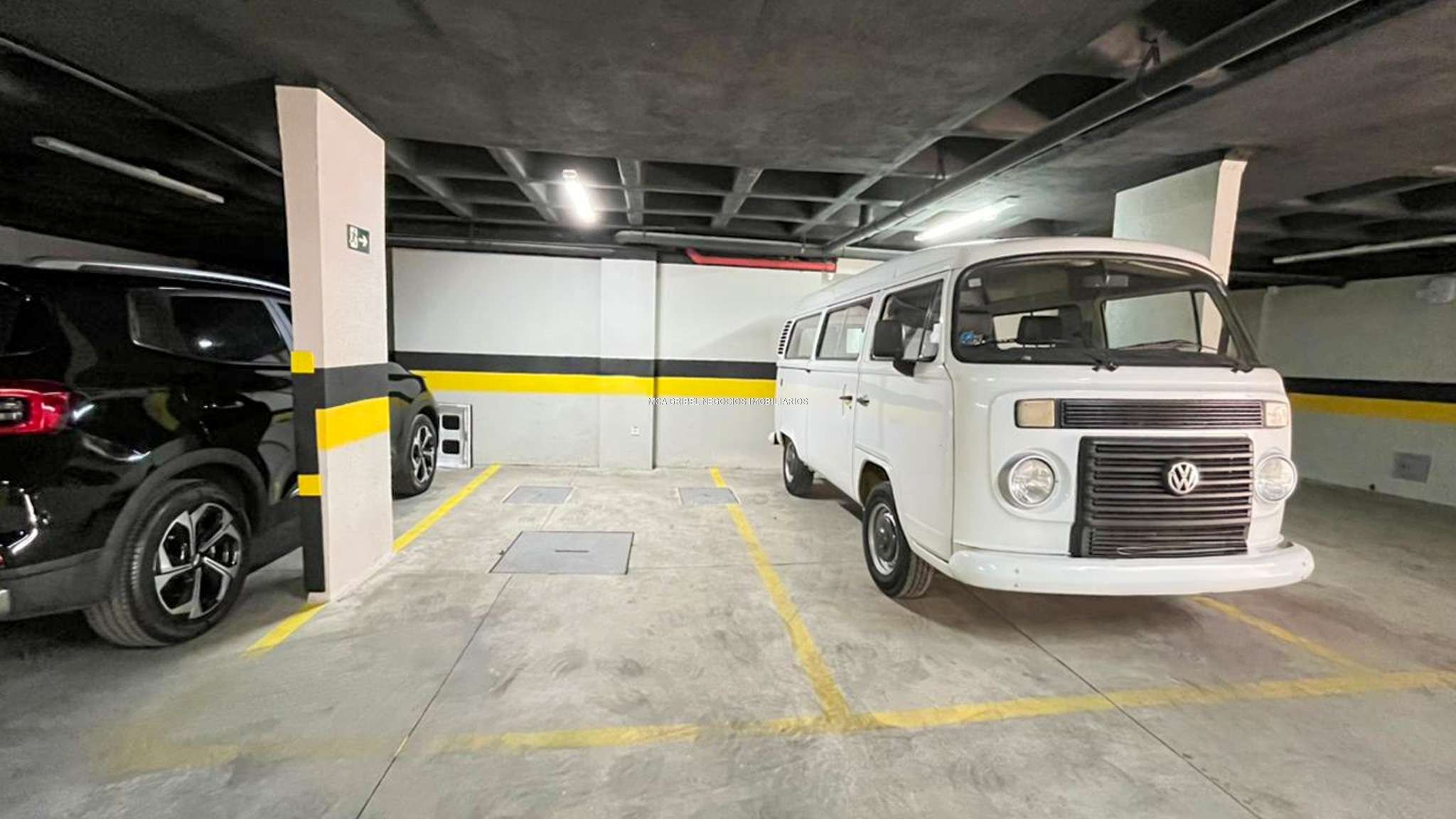 2 vagas cobertas e paralelas.