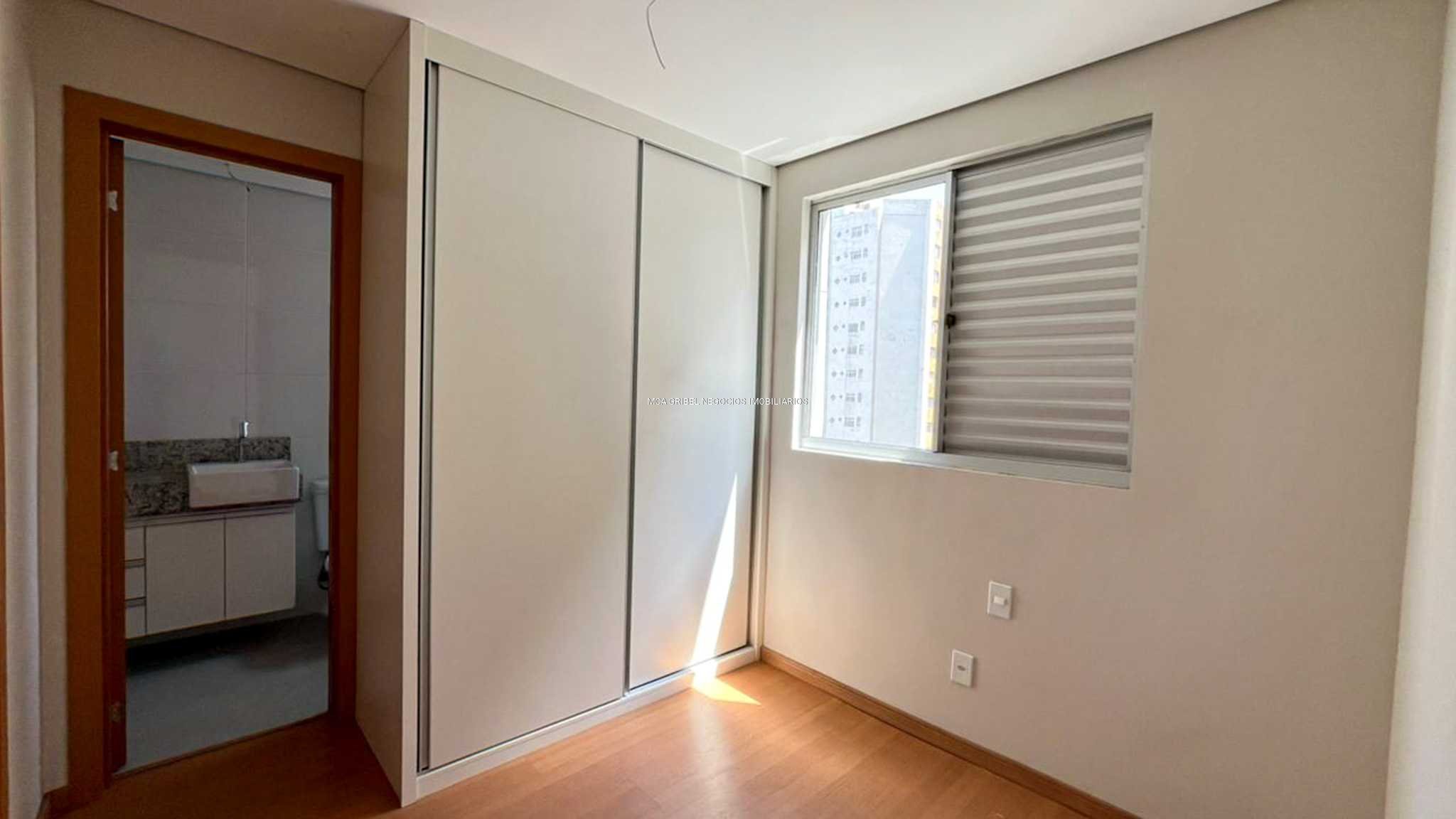 2 suítes confortáveis, ambas com armários planejados, ar-condicionado e piso em laminado de madeira.