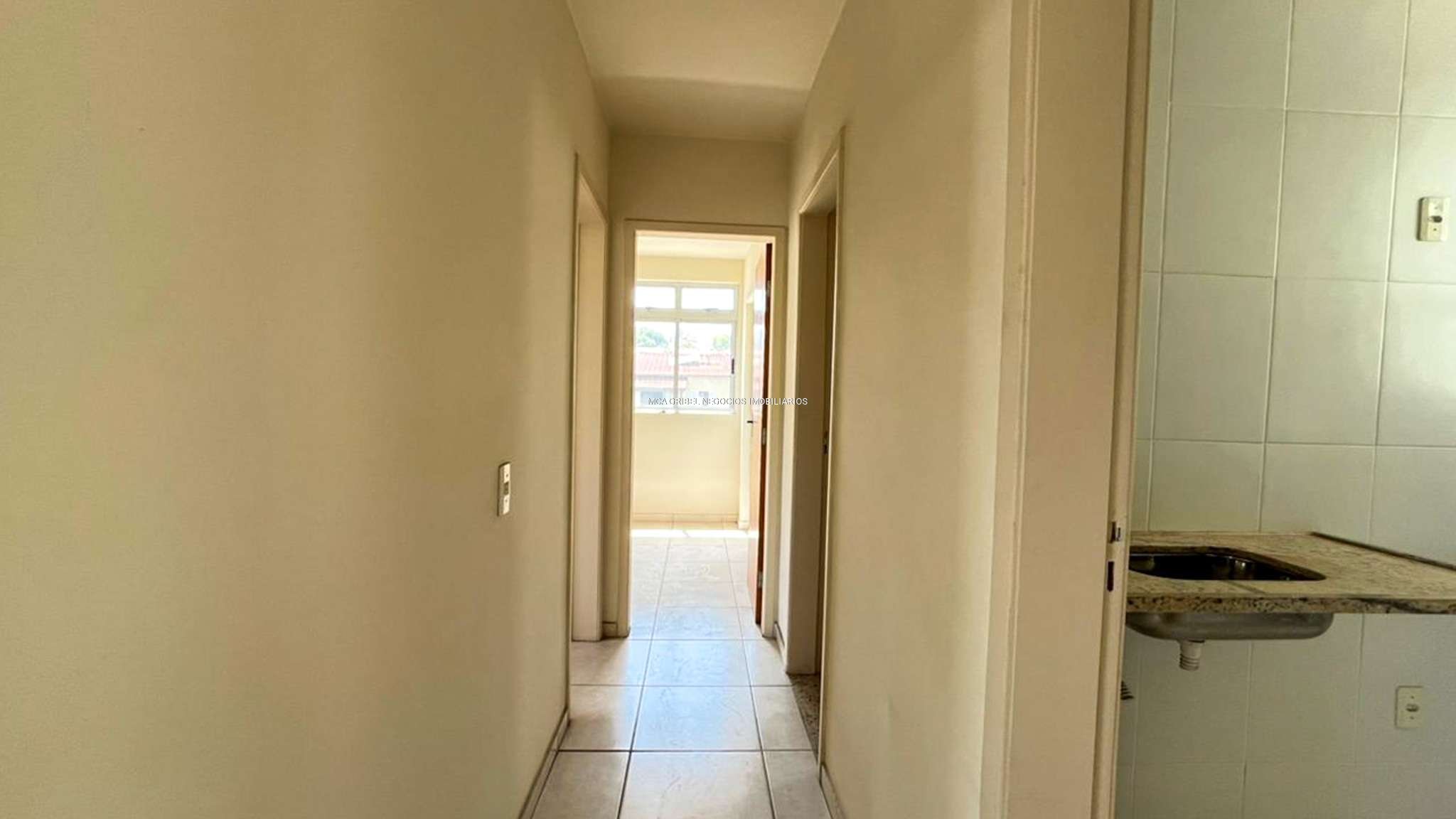 2 quartos amplos, todos com piso em cerâmica, sendo uma suíte com bancada em granito e varanda