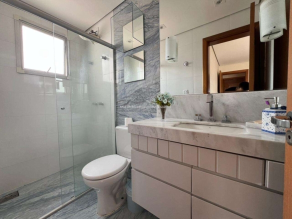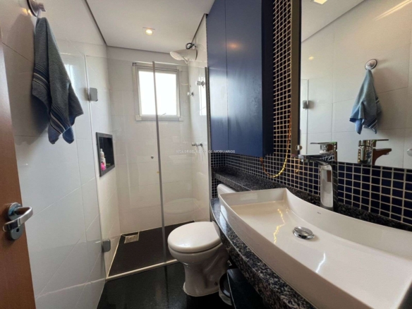 Conta com varanda, área de serviço e ambientes bem distribuídos. A cozinha e os banheiros possuem armários planejados, além de box nos banheiros, oferecendo funcionalidade e organização no dia a dia. A cobertura dispõe ainda de área externa, perfeita para criar um espaço de convivência, relaxamento ou lazer.